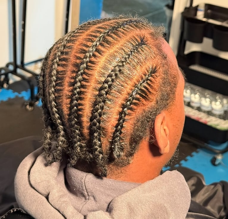 Enjoy a sleek, lightweight, and tension-free style with our Knotless Braids and sharp, clean, precision parting for our Mens Braids.